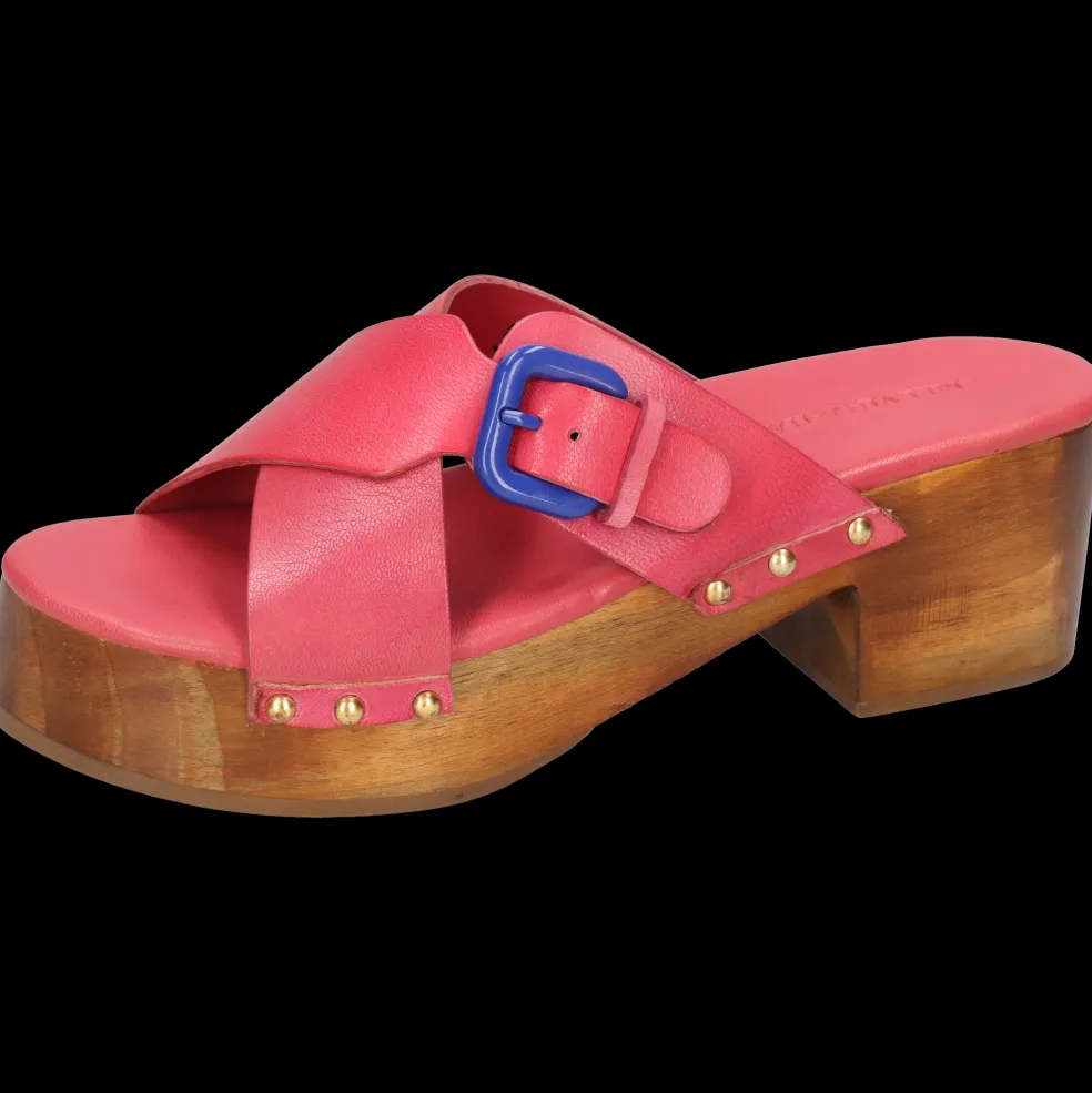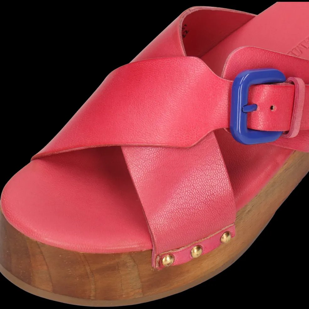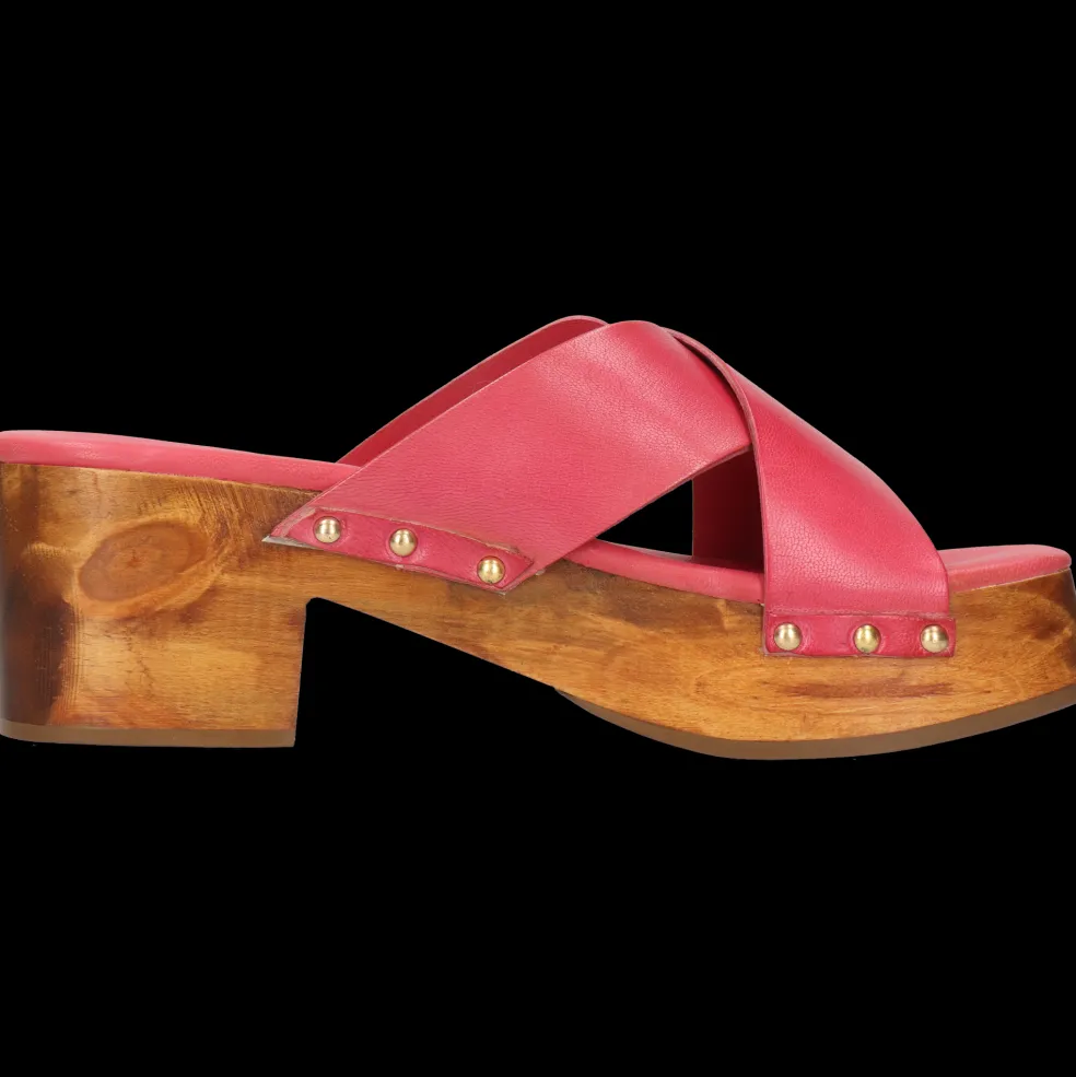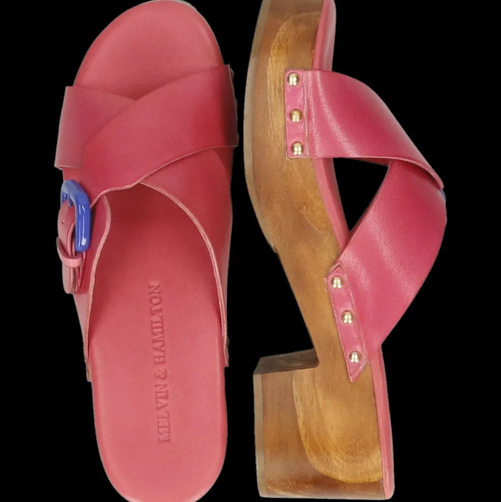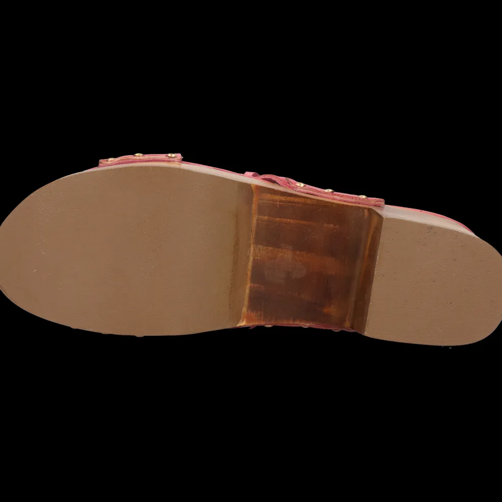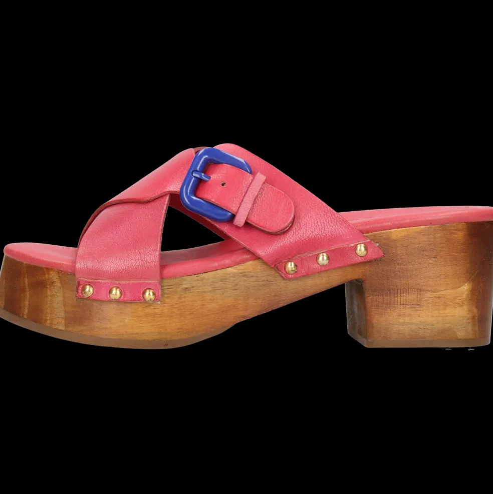 Nasze chodaki i ich Słupek, Skóra cielęca roślinnie garbowana oraz Różowy kolor, są naturalnie wykonane z wysokiej jakości skóry i know-how marki. Podeszwa Drewniano-gumowa i jej brązowa kolor, nadaje im elegancki wygląd bez kompromisów w kwestii komfortu. Wybierz te skórzane chodaki i ich kwadratowy nosek i pokaż swoje nogi!