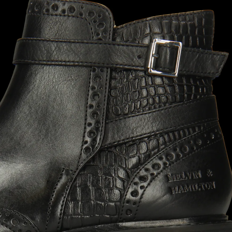 Melvin & Hamilton prezentuje damskie botki z kolekcji jesień-zima. Jako flagowy model sezonu jesienno-zimowego, nasze botki mają w sobie wyjątkowy know-how naszej marki. Odkryj nasze skórzane botki Selina 25, ich charakter i jak je nosić. Wybierz czarne botki, aby wyróżnić się z tłumu podczas chłodnych dni! Ten model łączy klasyczny wygląd i ponadczasowe kolory, ale pozwala sobie na odrobinę fantazji poprzez dyskretny szczegół, który robi różnicę. Te wysokiej jakości skórzane botki w niebanalnym designie podbiją Twoje serce!